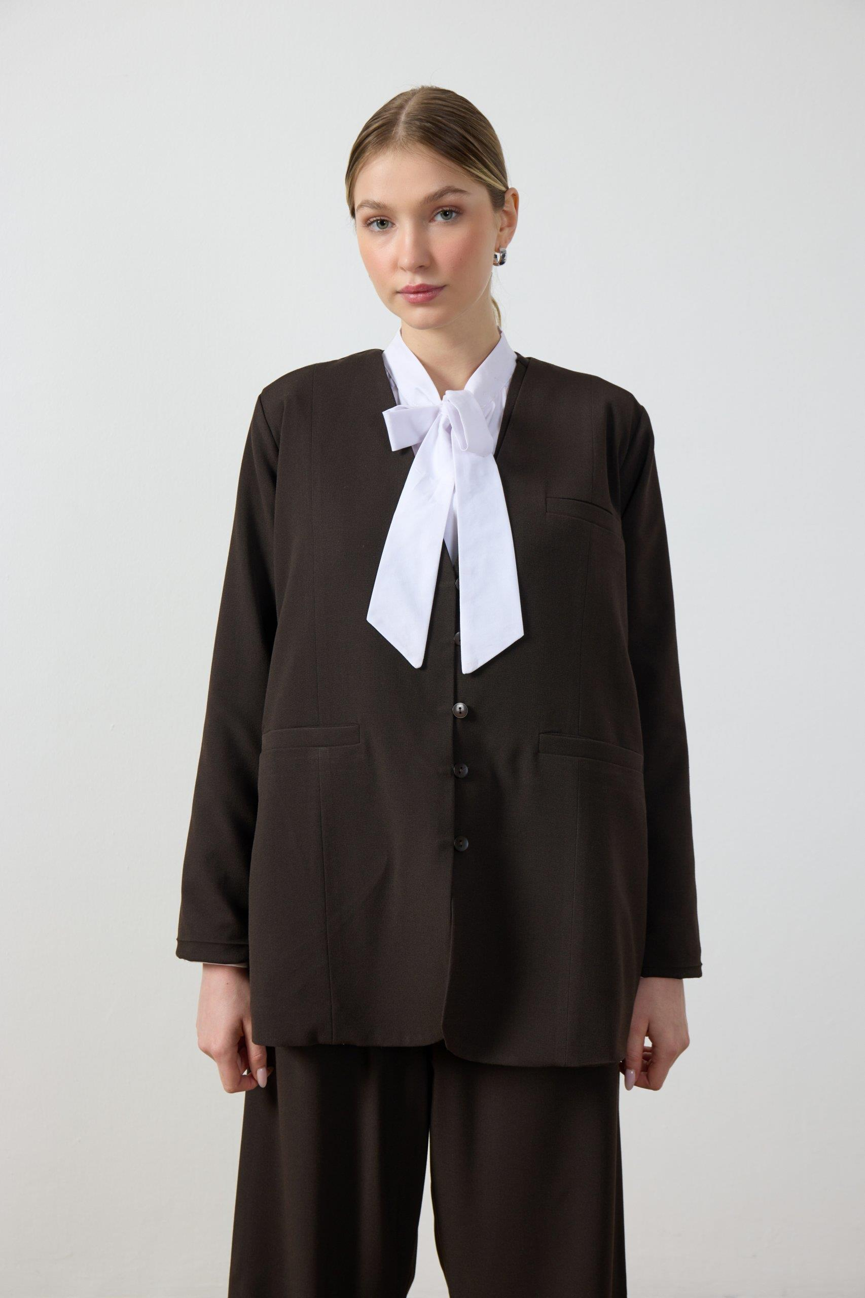 Düğme detaylı, V yaka, Ürün tam kalıptır.
