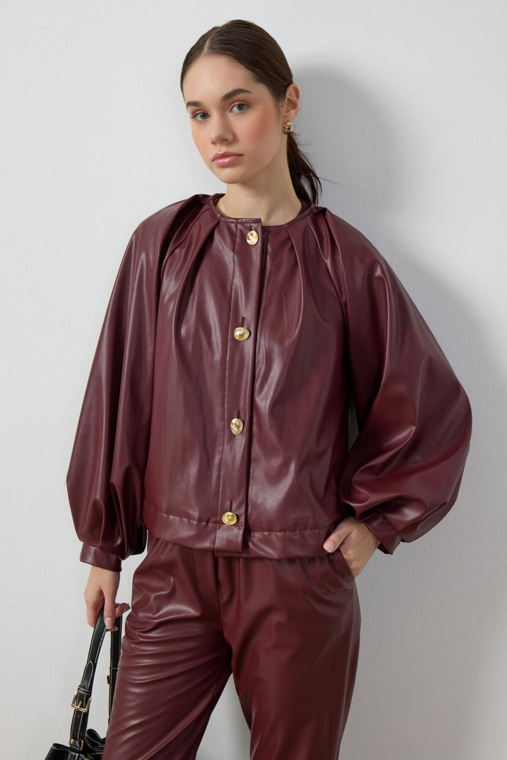Düğme detaylı, Bisiklet yaka, Balon kol, Suni deri kumaş Tam kalıp, Ürün astarlıdır.