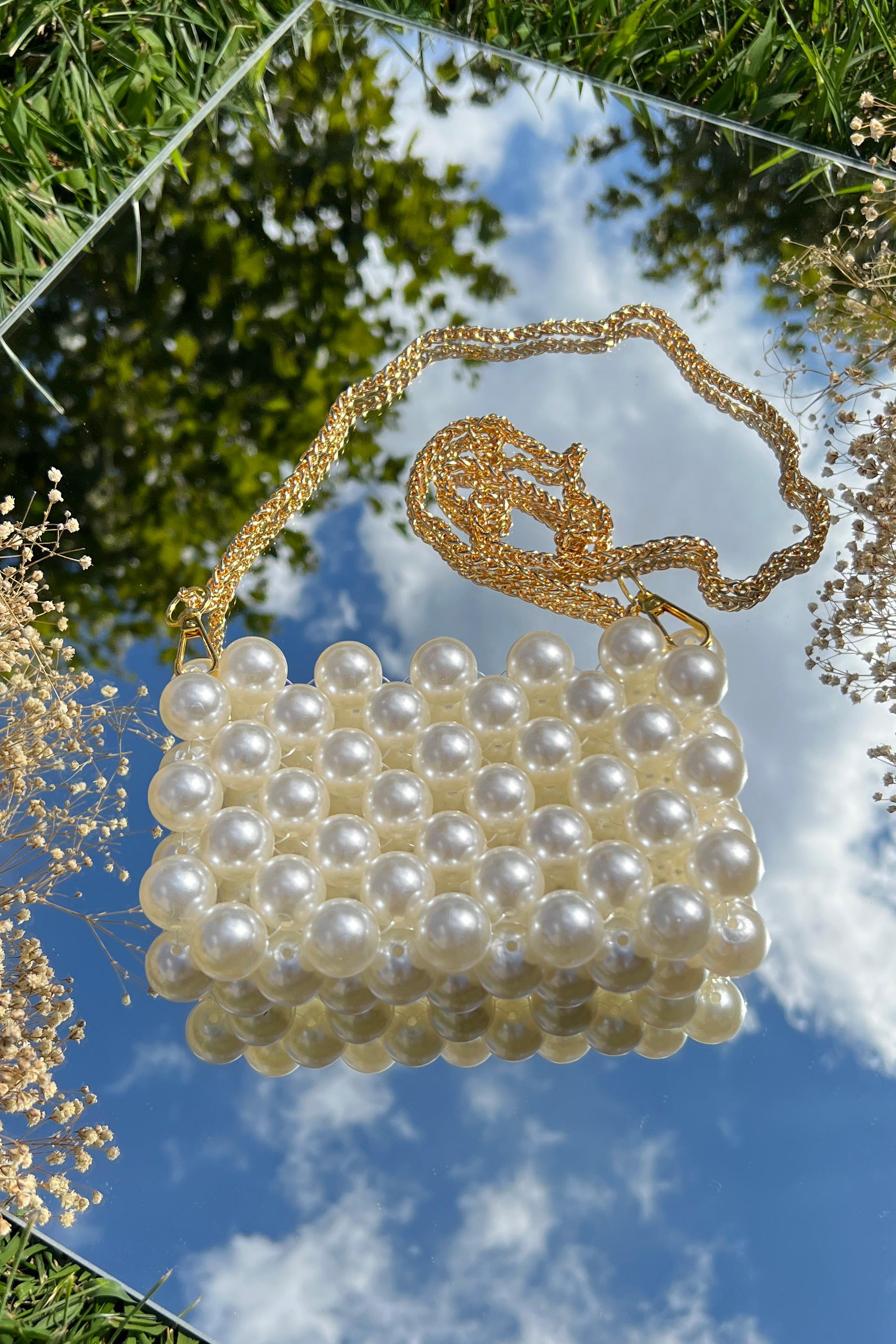 Gold Uzun Askı İnci Çanta