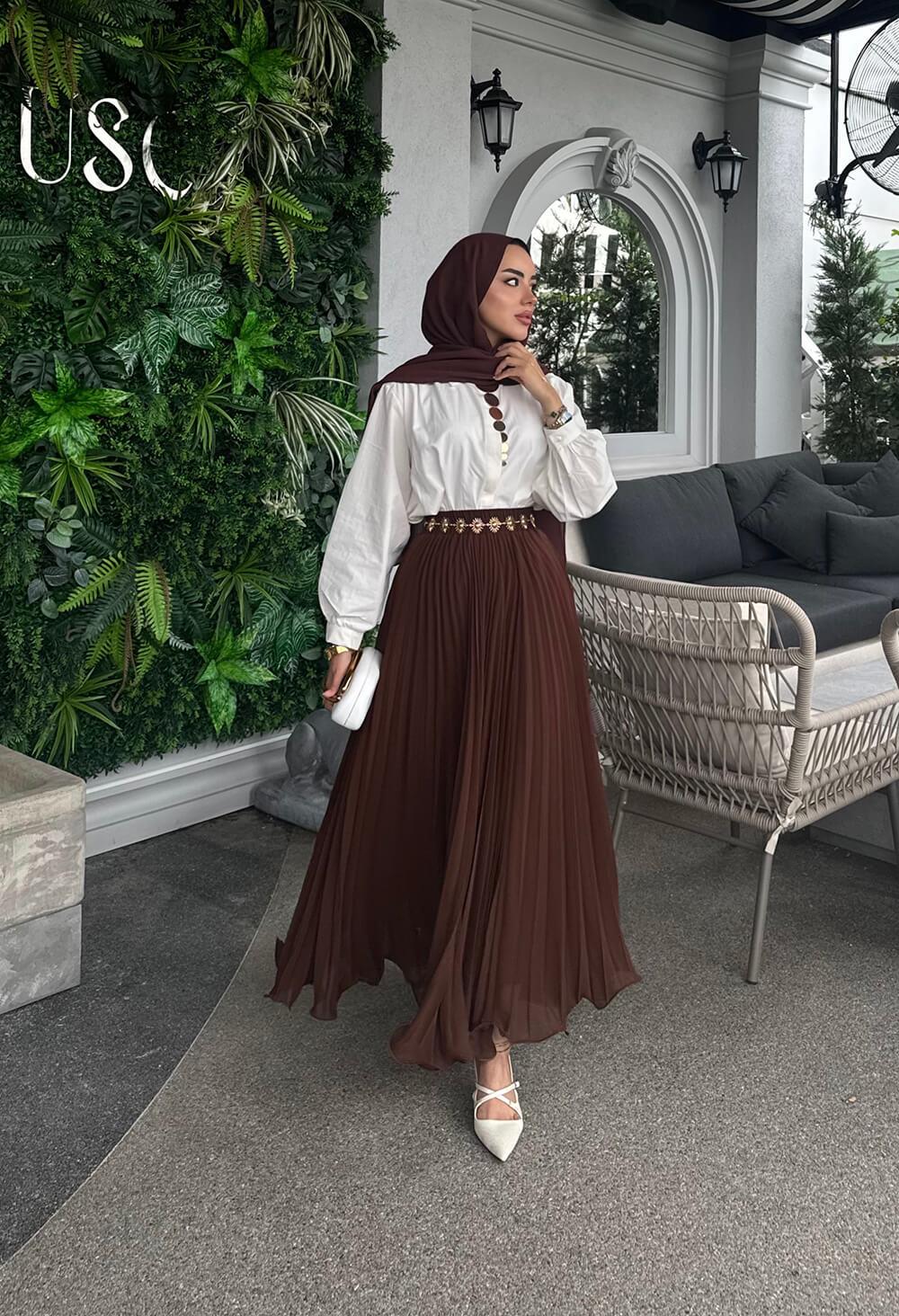 Kahverengi Misinalı Şifon Etek