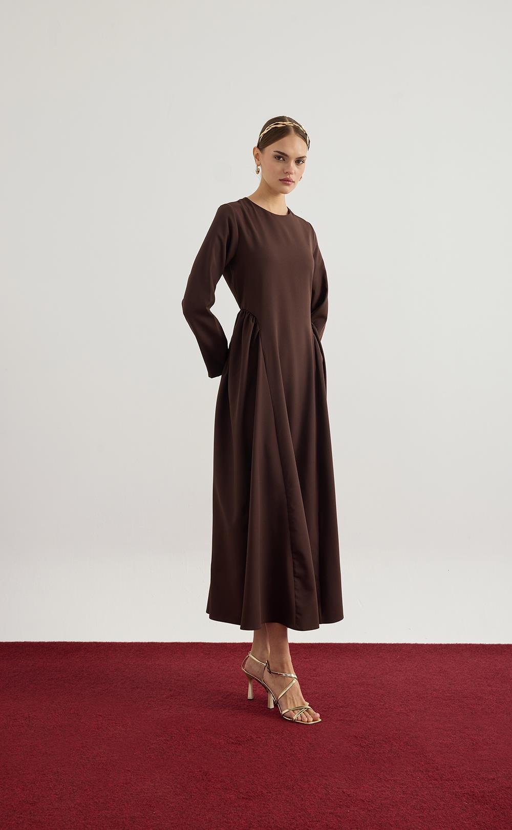 Kahverengi Yandan Büzgü Detaylı Elbise