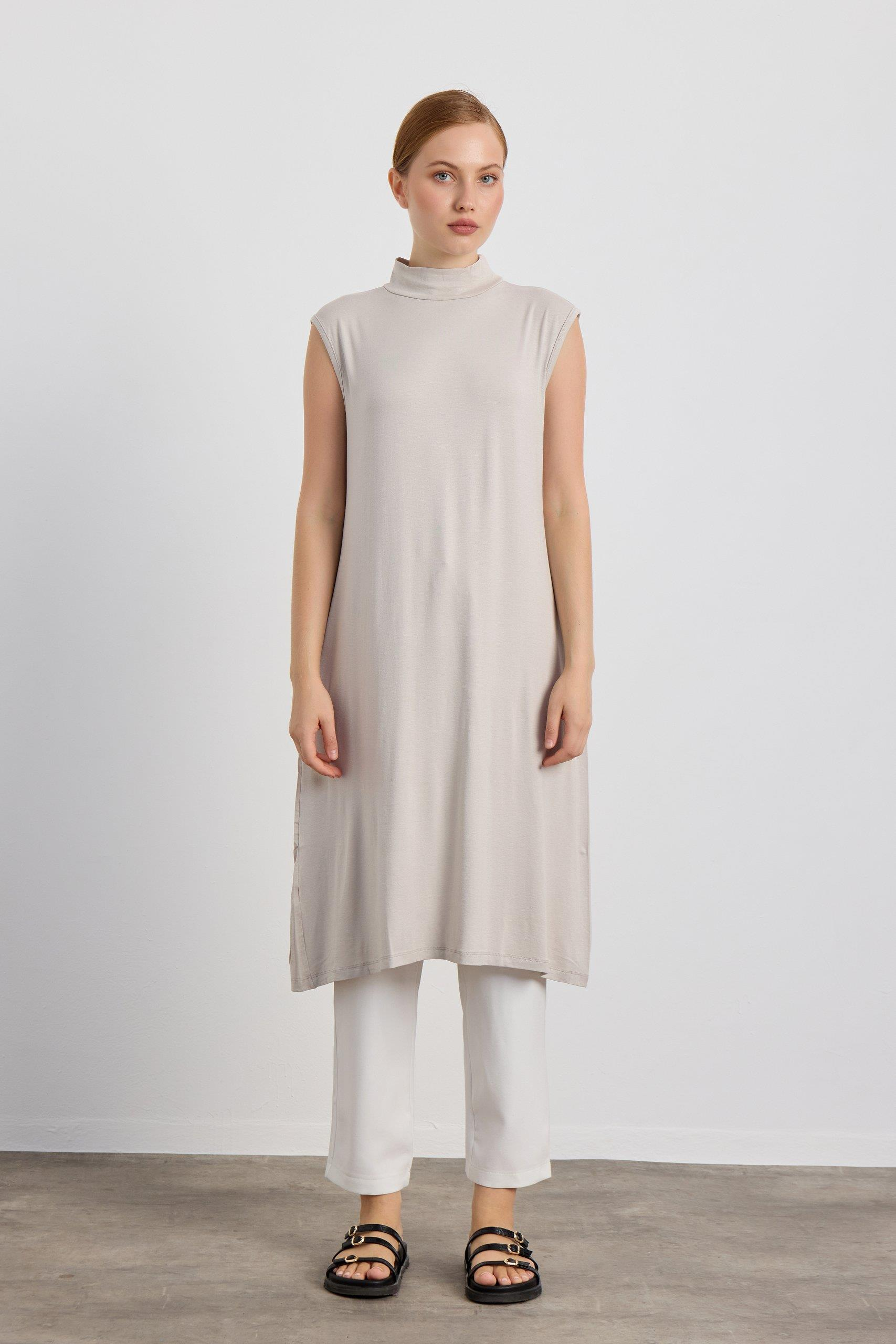 Taş Rengi Sıfır Kol Balıkçı Yaka Body 105cm