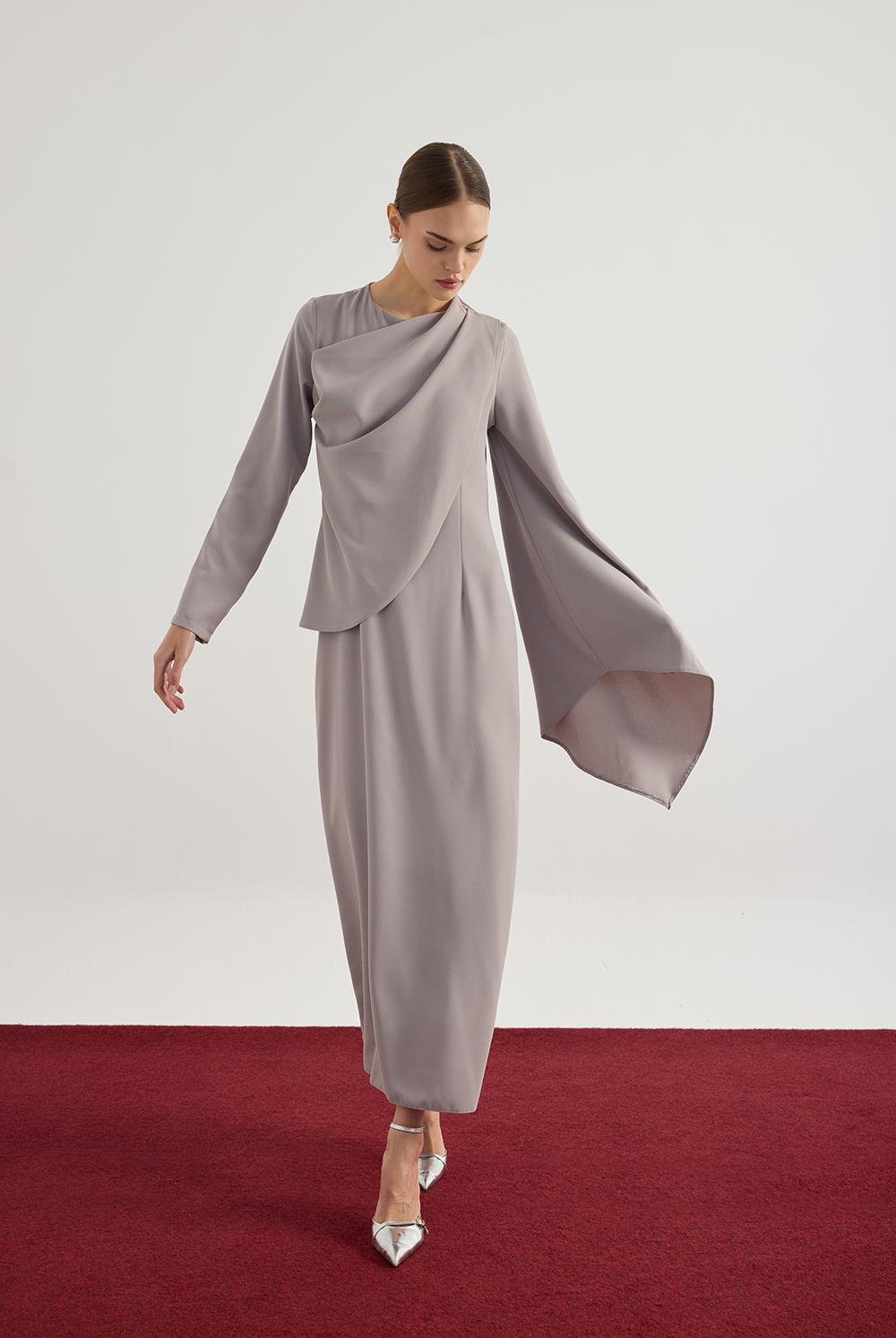 Asimetrik Elbise üst kısımındaki detayıyla havalı görünüm sunarken salaş kesimiyle konfor sağlar. Kol detayındaki asimetrik kesim sayesinde de sıradanlıktan uzak zarif bir görünüm sunar.