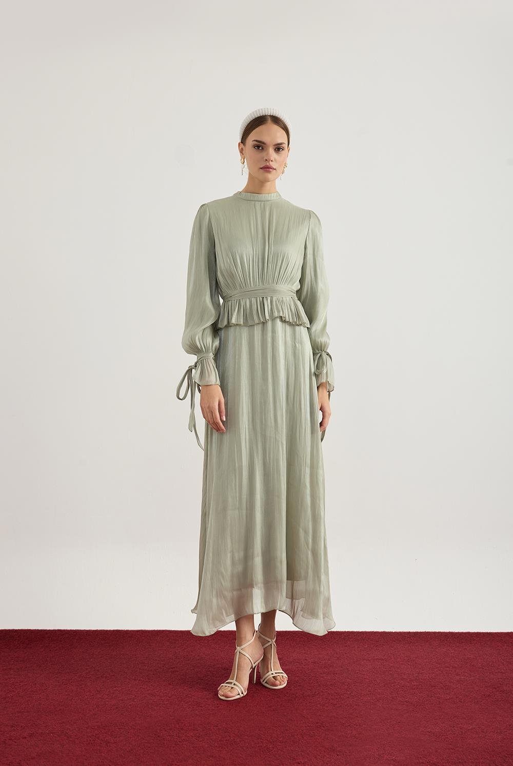 Her adımda hafiflik hissi veren ve akıcı formuyla Büzgü Detaylı Janjan Elbise, her ana uyum sağlayabilecek zamansız star bir parça. Kol kısmındaki bağlama detayı ve bel kısmındaki kemer ile bütünleşerek tasarıma şıklık katmakta.