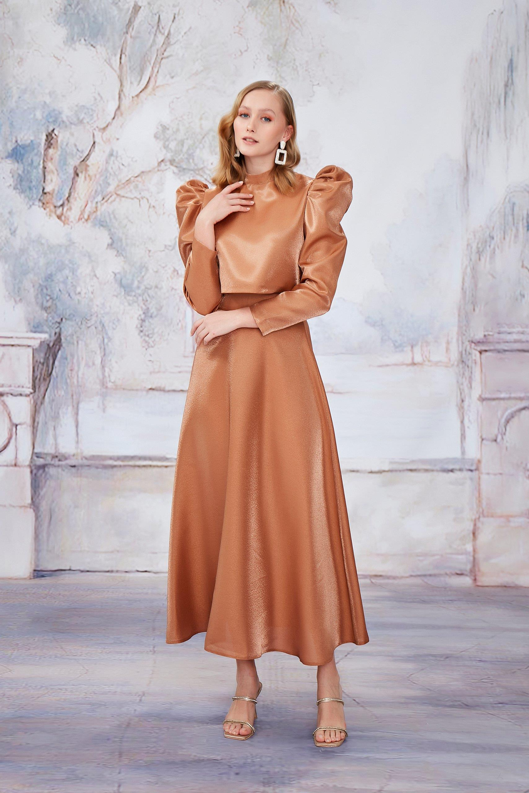 Karpuz kol, Saten kumaş, Bluz arkadan fermuarlı, Etek yandan fermuarlı, Tam kalıptır. *Maksimum 30 derecede yıkayınız, tersten yıkayınız ve ütüleyiniz.