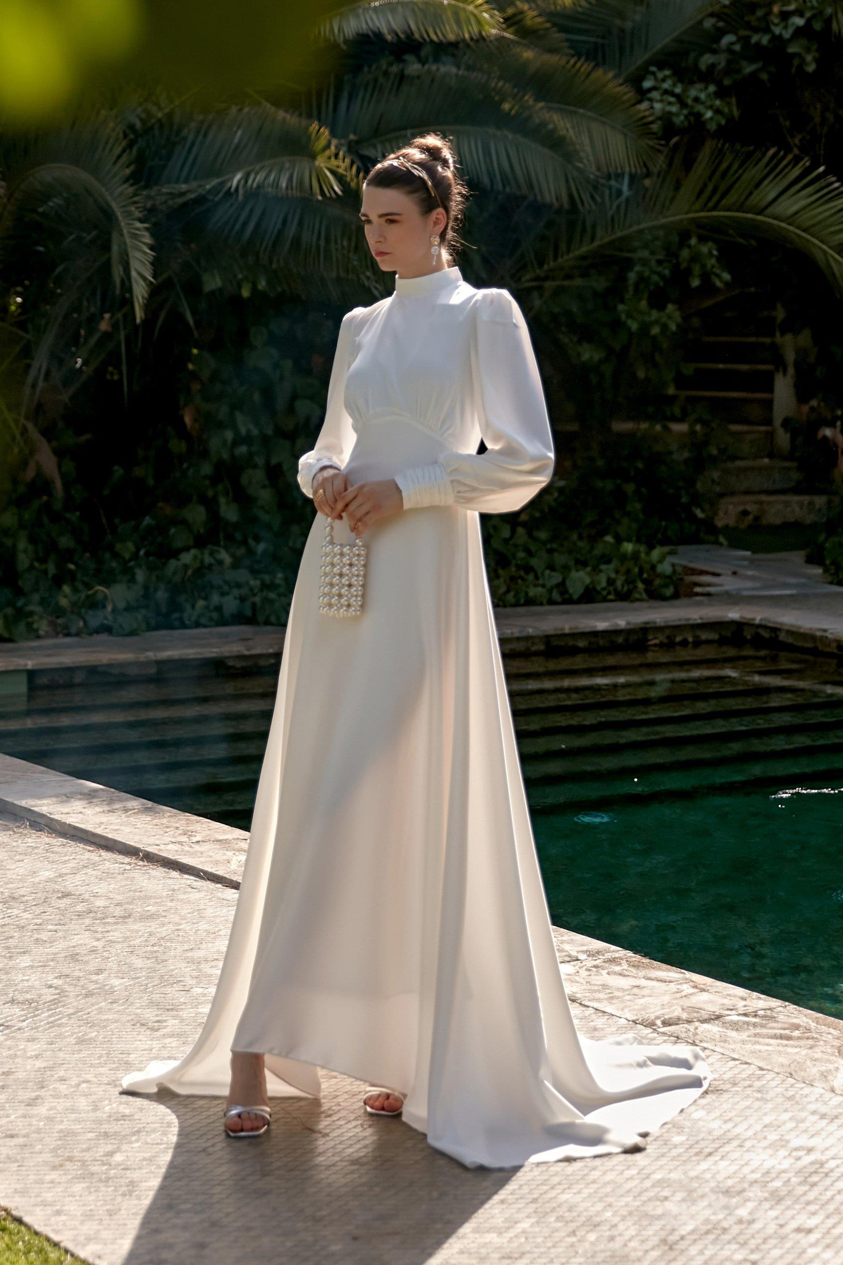 Yüksek yaka, Balon kol, Astarlı, Manşet detaylı, Zara saten kumaş, Arkadan fermuarlıdır. *Kısa programda tek başına yıkama yapınız. Düşük ısıda ütüleyiniz. Beden 1 (36/38), 2 (40/42)