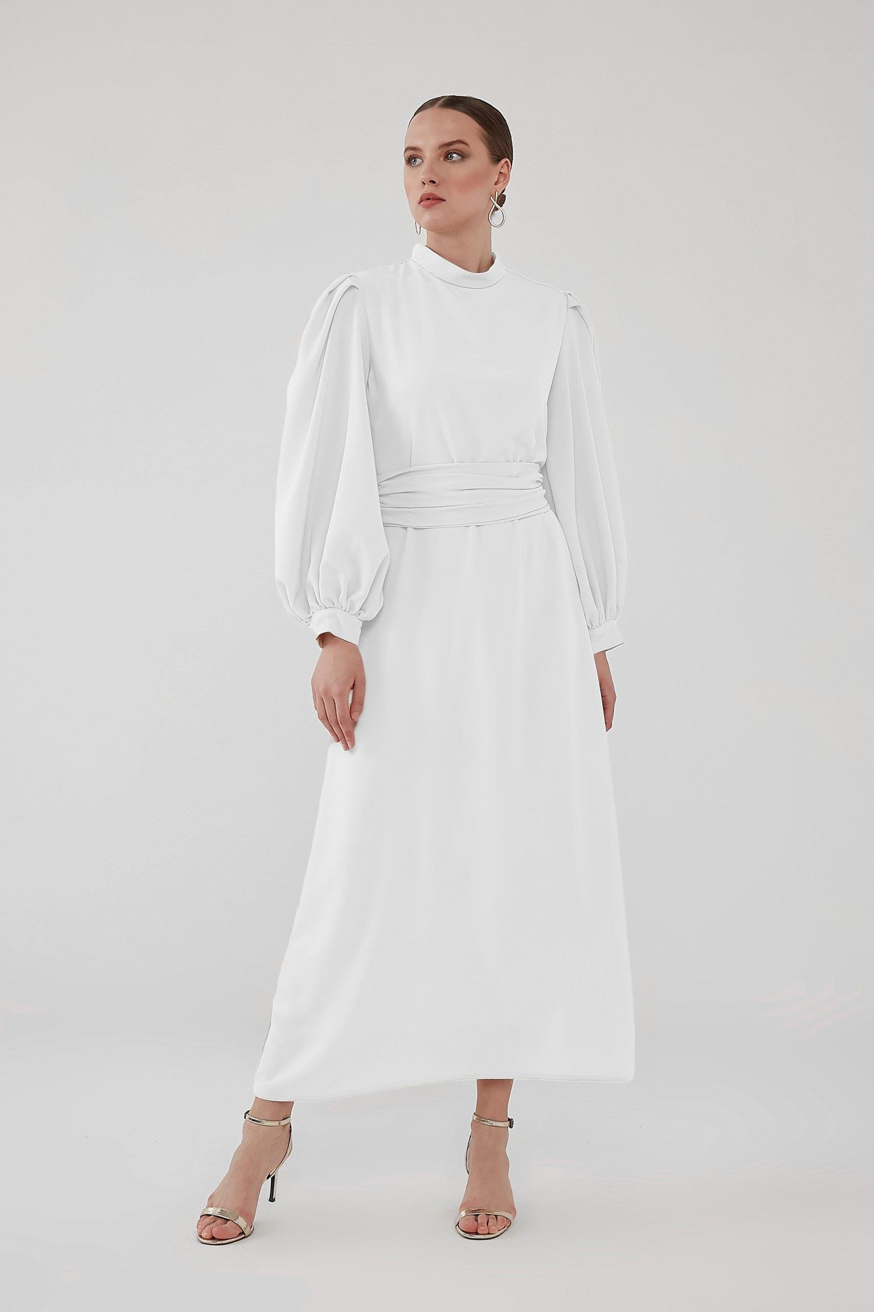 Yüksek yaka, Balon kol, Omuzlarında pile detaylı, Astarlı, Manşet detaylı, Kristal krep kumaş, Ayarlanabilir seyyar kuşaklı. *Kısa programda tek başına yıkama yapınız. Düşük ısıda ütüleyiniz.