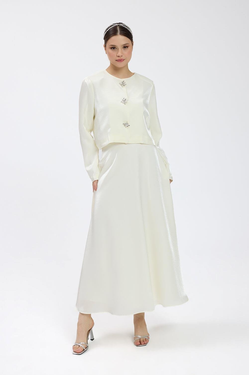 Aksesuarlar ayrı satılmaktadır. Ceket boyu 45 cm'dir. Etek boyu 95 cm'dir.