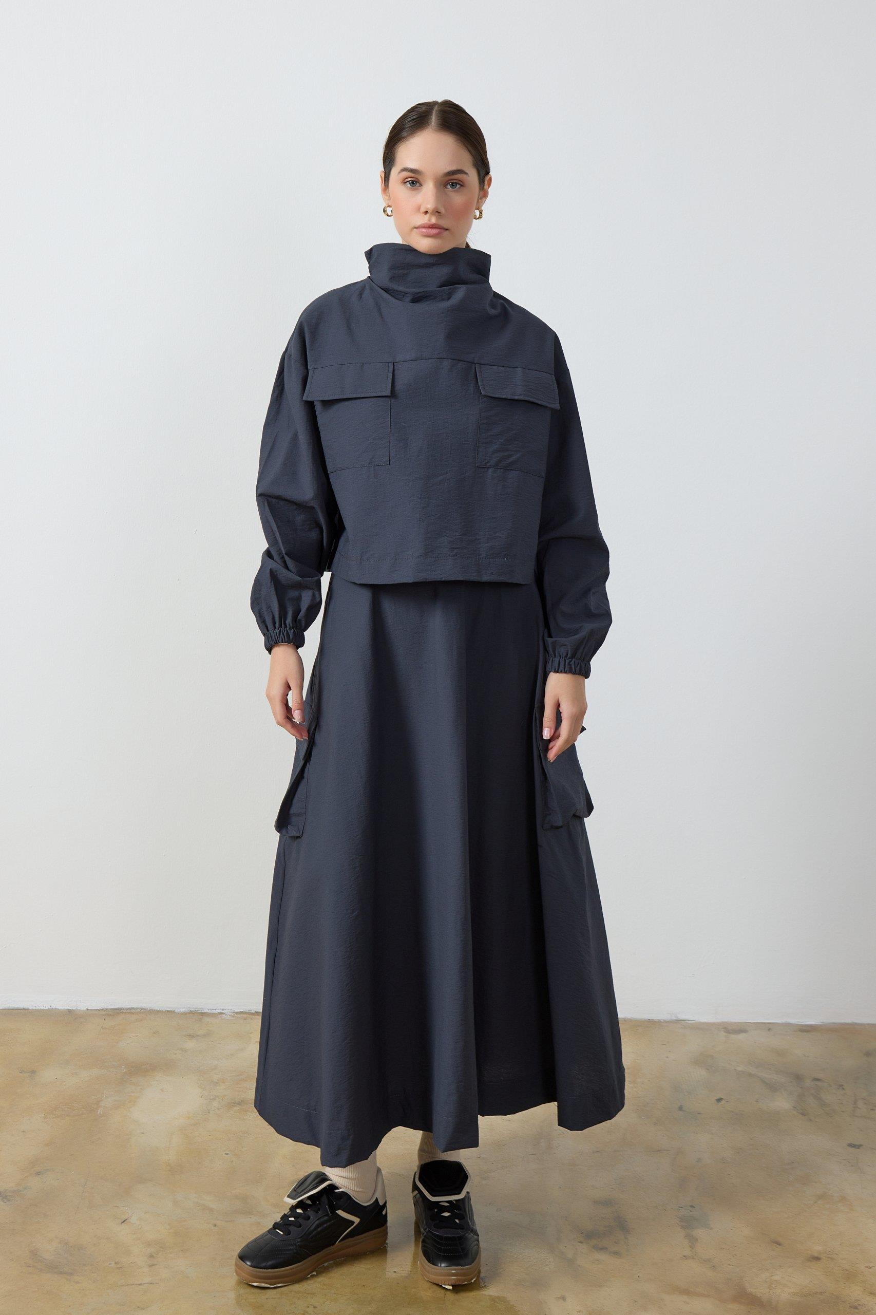 Cep ve omuz detaylı, Dik yaka, Paraşüt kumaş, Lastikli bilek detayı, Ürün tam kalıptır.