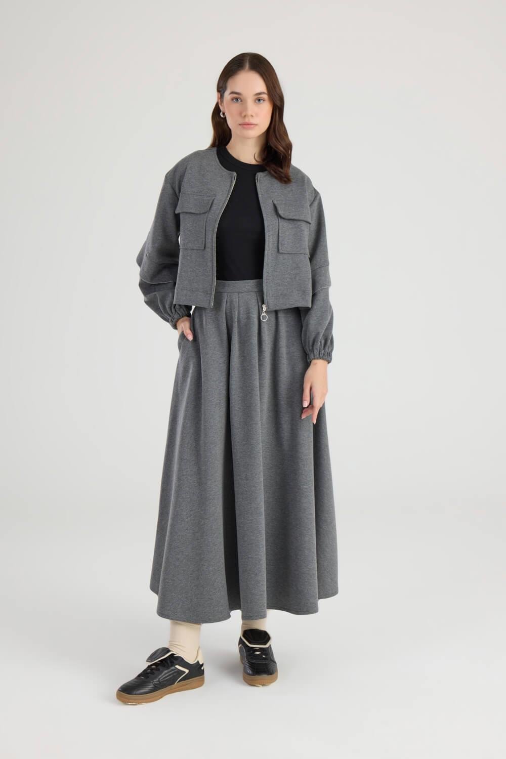 Fermuar detaylı, geniş kalıp, Balon Kol, oysho kumaştan üretilmiştir.