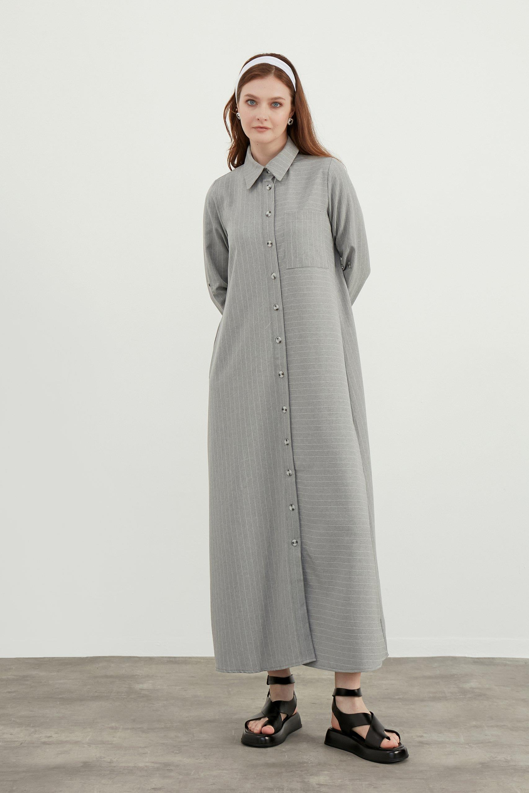 Boydan düğme detaylı, Manşet kol, Gömlek yaka, Tam kalıptır. *Maksimum 30 derecede yıkayınız, tersten yıkayınız ve ütüleyiniz. 36-38 Beden Göğüs 96 cm Omuz 38 cm Kol boyu 62 cm Boy 140 cm 40-42 Beden Göğüs 100 cm Omuz 40 cm Kol boyu 62 cm Boy 140 cm