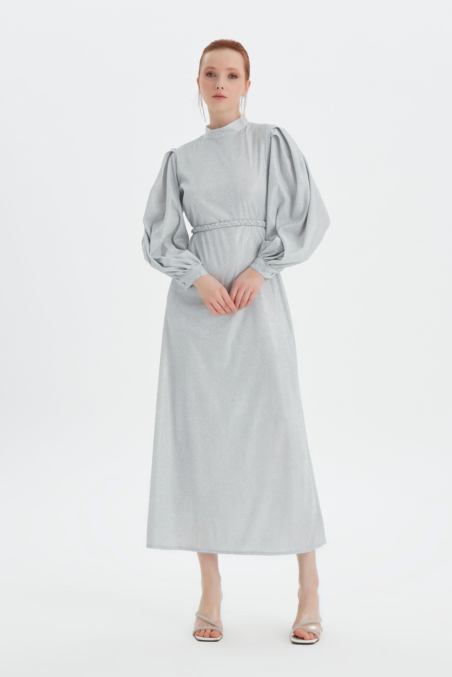 Yüksek yaka, Balon kol, Astarlı, Manşet detaylı, Kristal krep kumaş, Ayarlanabilir örgü seyyar kuşaklı. *Kısa programda tek başına yıkama yapınız. Düşük ısıda ütüleyiniz.