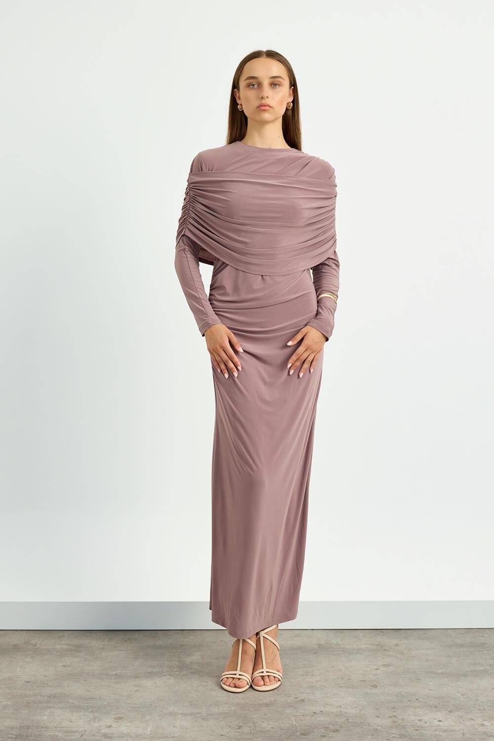 Gül Kurusu Omuz Detaylı Drape Elbise