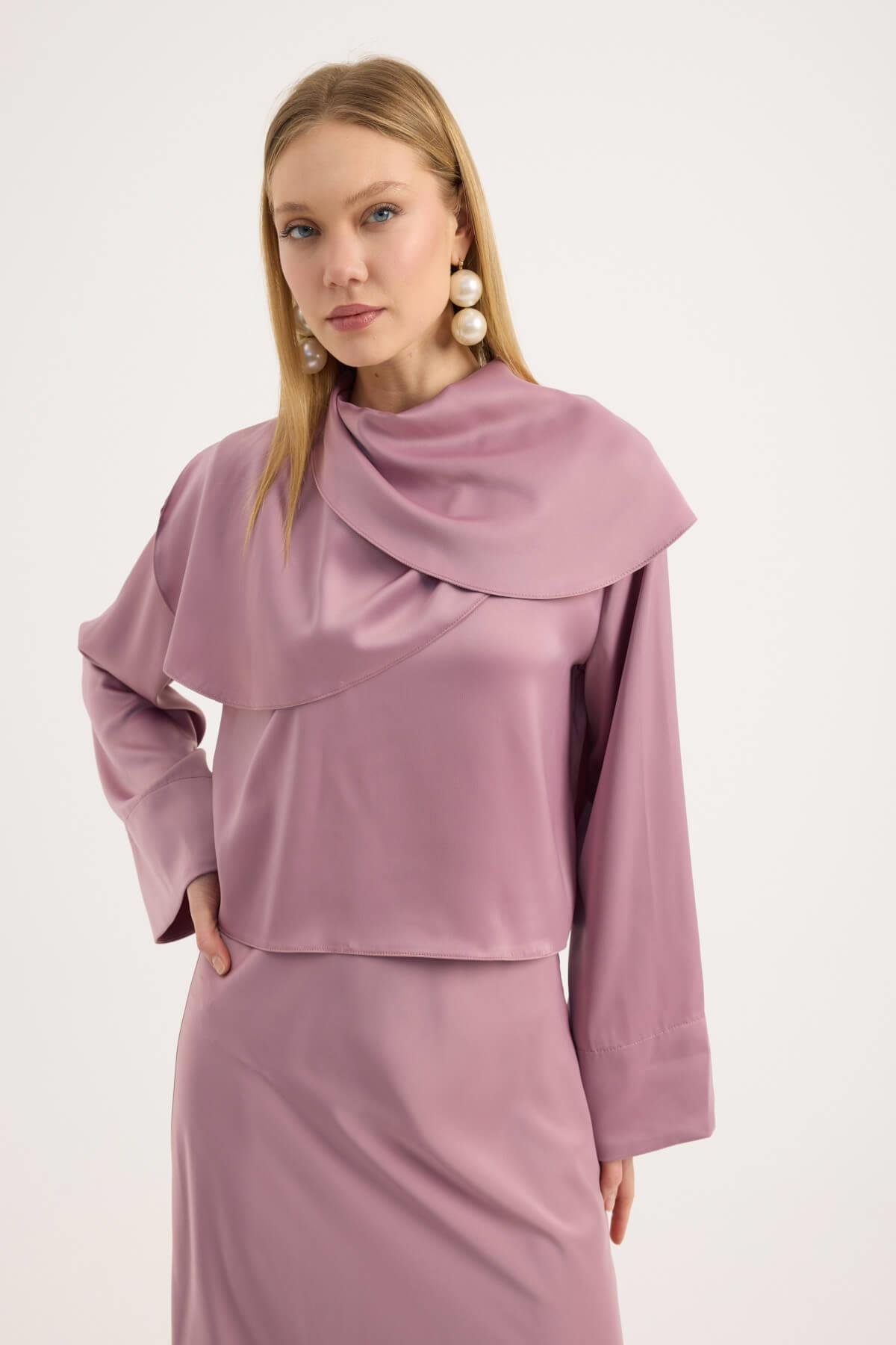 Geniş kol detaylı, Dik yaka, Zara saten kumaş, Ürün tam kalıptır.
