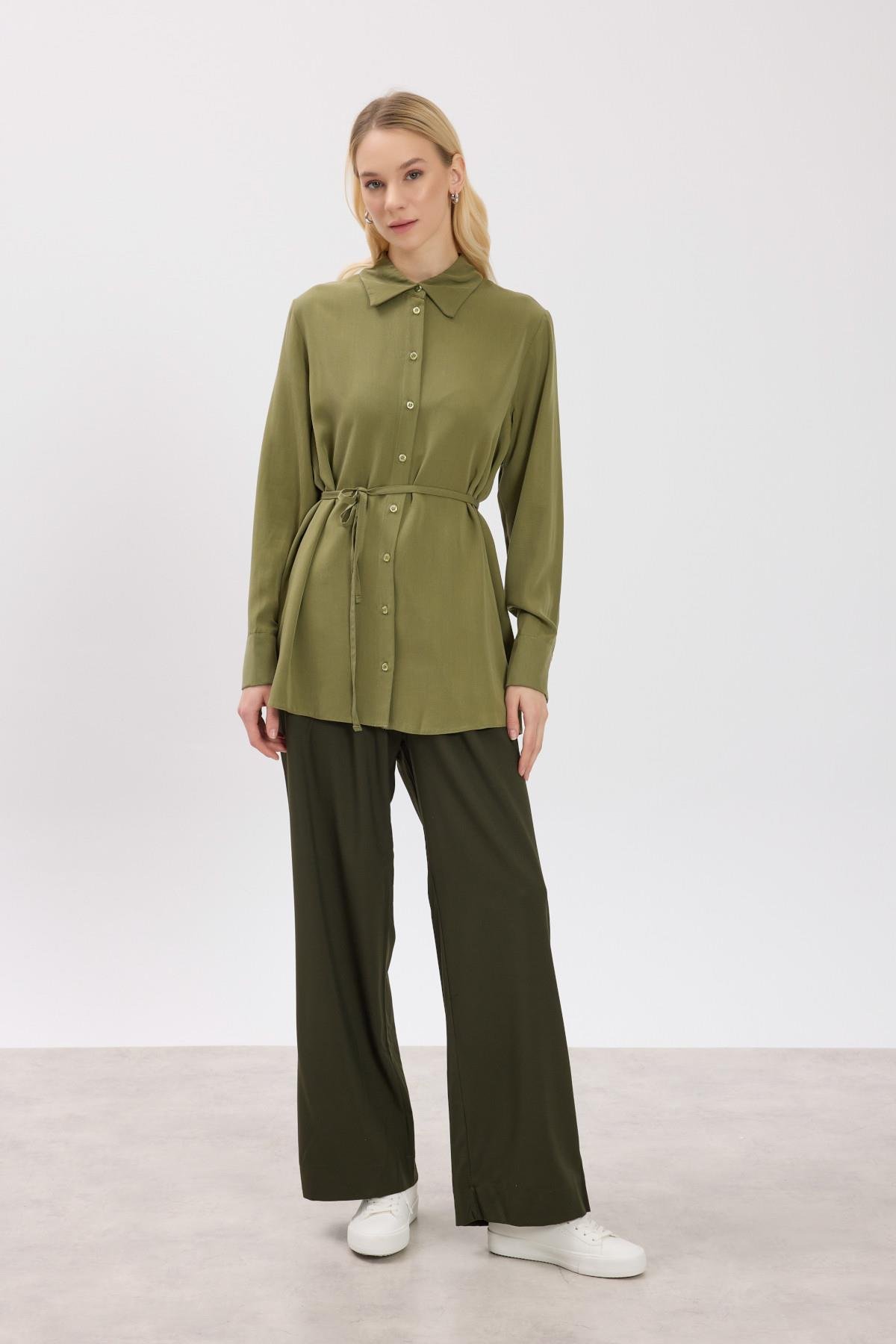 Tensel kumaştır. Seyyar kemer mevcuttur. Ürün boyu 70 cm'dir Bakım Talimatı: 30°C’de hassas yıkama yapılabilir. Ağartıcı kullanmayınız. Kurutma makinesine uygun değildir. Düşük ısıda ütüleyiniz. Kuru temizleme yapılabilir. Benzer renklerle yıkayınız.