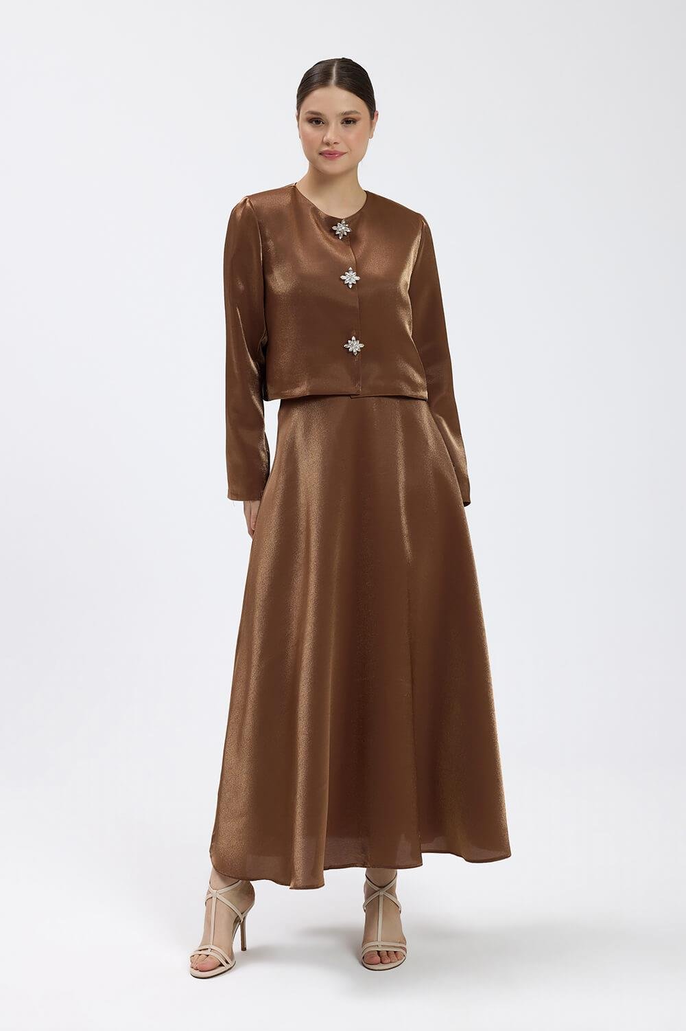 Aksesuarlar ayrı satılmaktadır. Ceket boyu 45 cm'dir. Etek boyu 95 cm'dir.