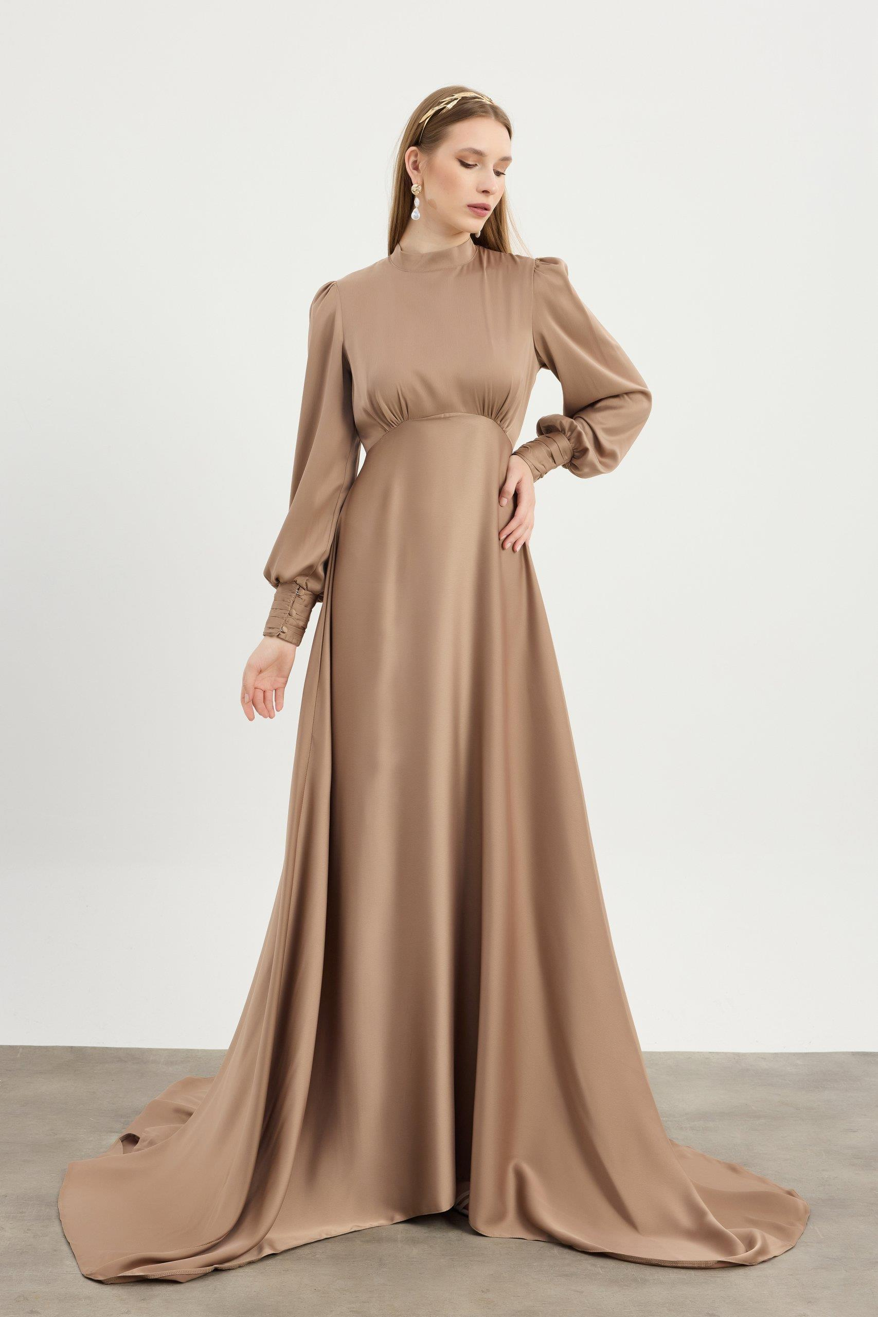 Yüksek yaka, Balon kol, Astarlı, Manşet detaylı, Zara saten kumaş, Arkadan fermuarlıdır. *Kısa programda tek başına yıkama yapınız. Düşük ısıda ütüleyiniz. Beden 1 (36/38), 2 (40/42)