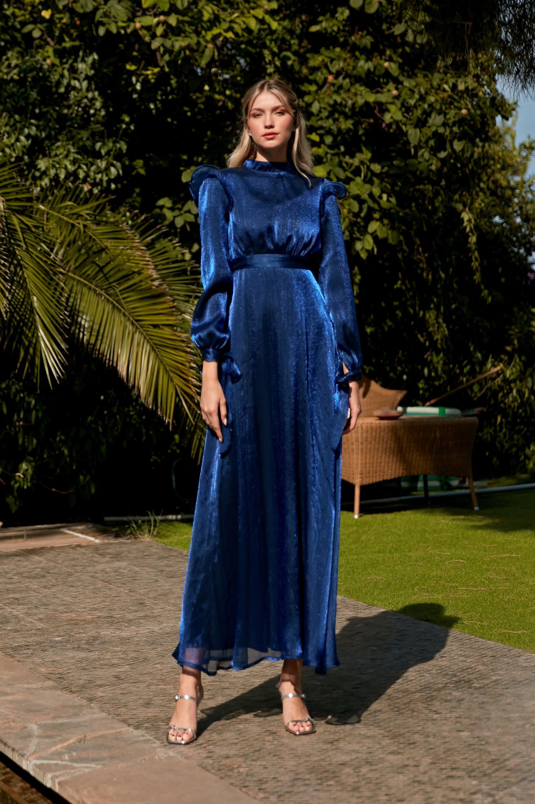 Yüksek yaka, Geniş kol, Astarlı, Ürün Kolu Lastikli, Omuz Fırfır Detaylı, Işıltılı Şifon Kumaş, Bağlamalı Kol Detayı, Ayarlanabilir seyyar kuşaklı. *Kısa programda tek başına yıkama yapınız. Düşük ısıda ütüleyiniz.