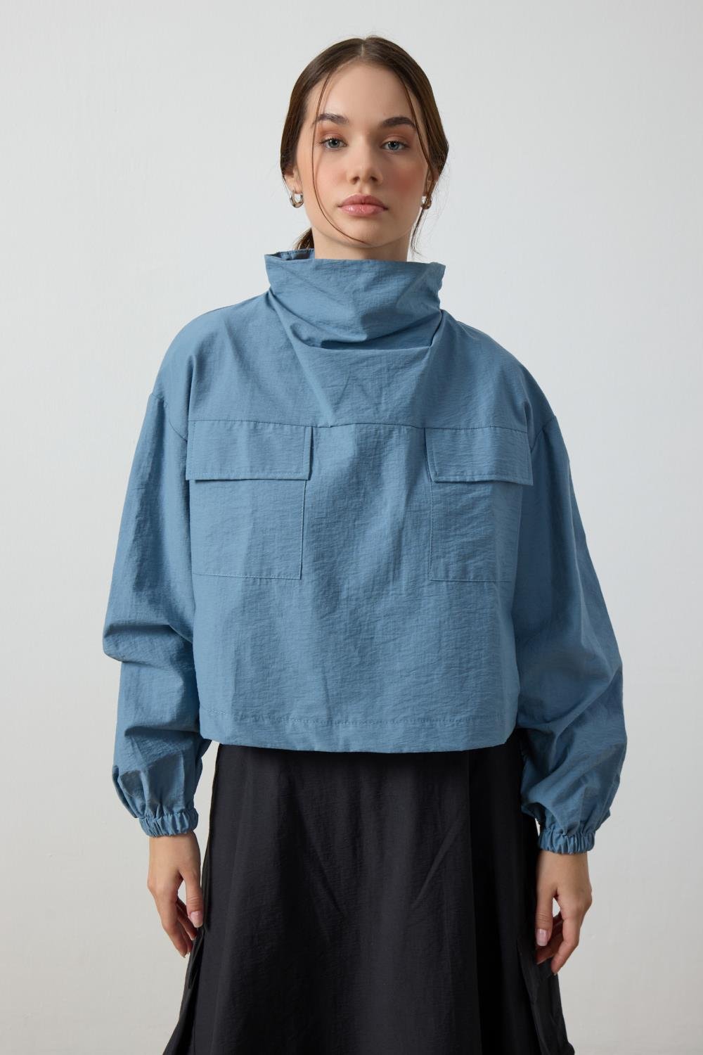 Cep ve omuz detaylı, Dik yaka, Paraşüt kumaş, Lastikli bilek detayı, Ürün tam kalıptır.