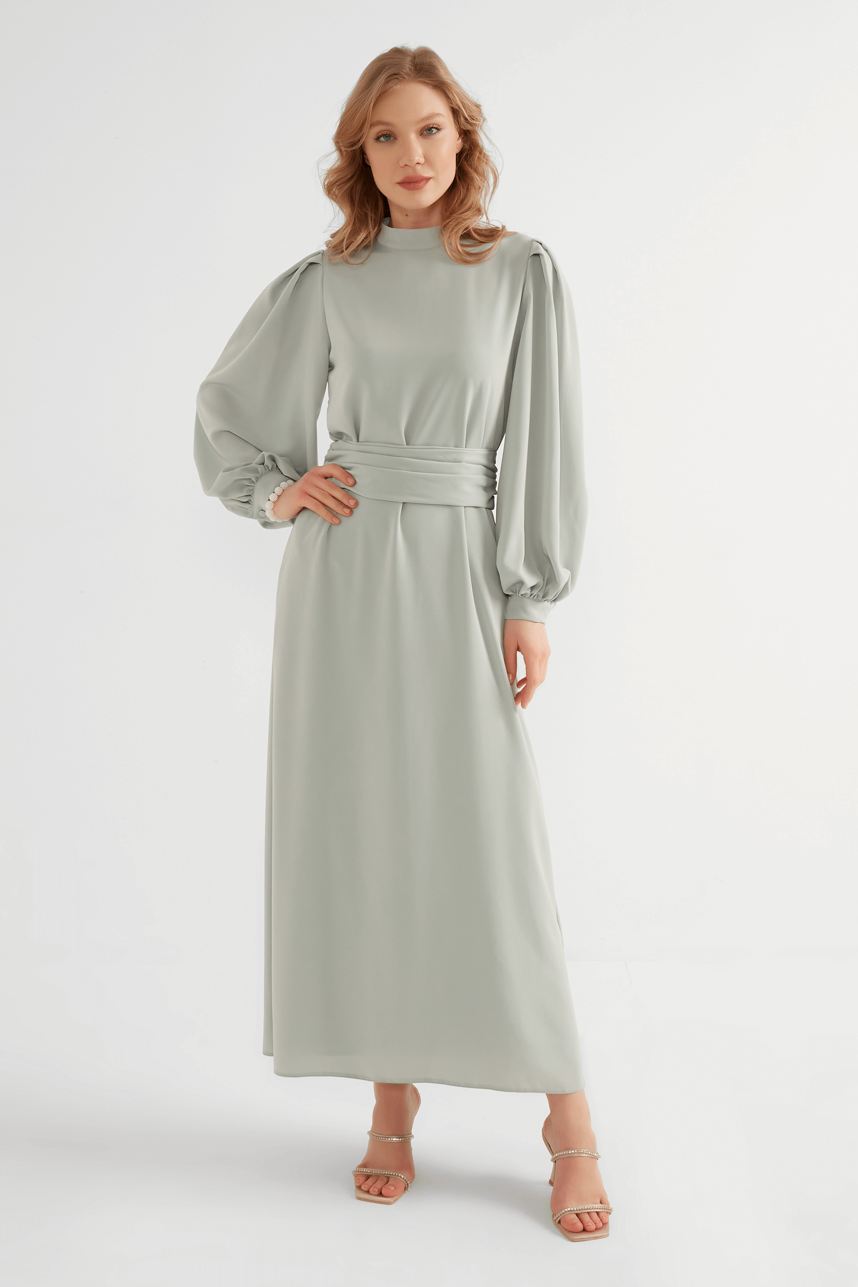 Yüksek yaka, Balon kol, Omuzlarında pile detaylı, Astarlı, Manşet detaylı, Kristal krep kumaş, Ayarlanabilir seyyar kuşaklı. *Kısa programda tek başına yıkama yapınız. Düşük ısıda ütüleyiniz.