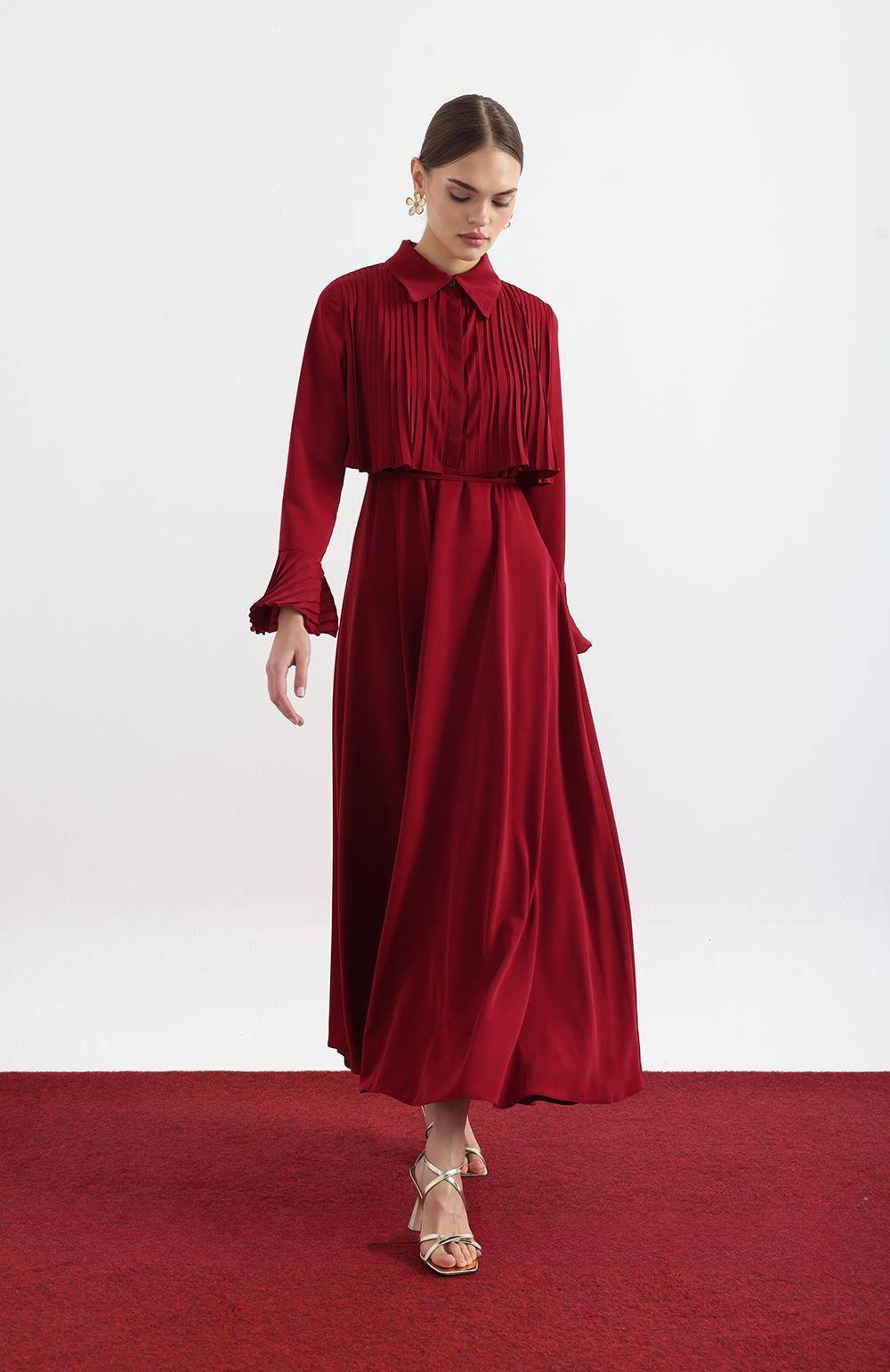 Mürdüm Manşet Detaylı Piliseli Elbise
