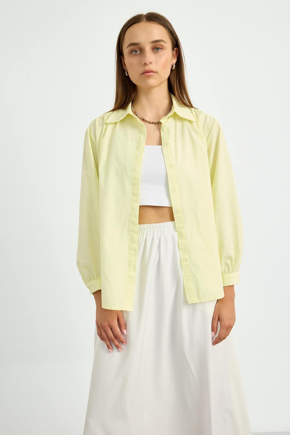 Sarı Büzgülü Poplin Gömlek