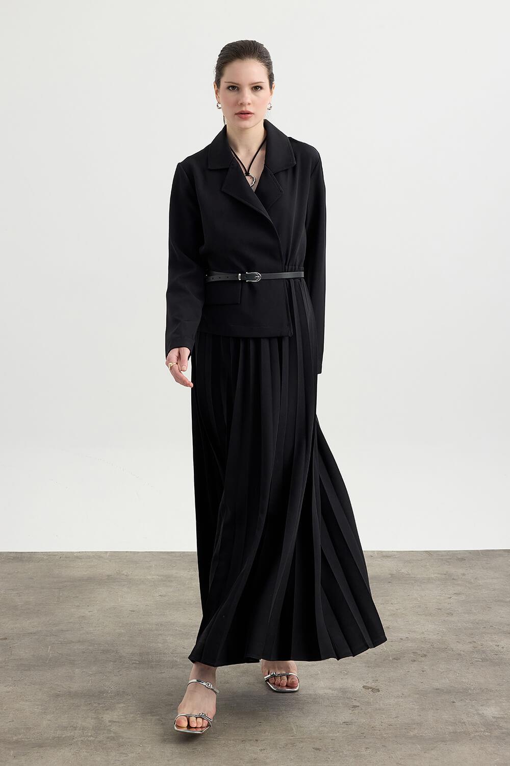 Kruvaze Yaka, Pile Detaylı Etek, Double Krep Kumaş, Tam Kalıp, Kemer Detaylı. *Kısa programda tek başına yıkama yapınız. Düşük ısıda ütüleyiniz.