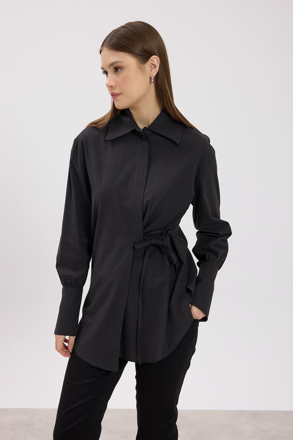 Siyah Bağlama Detaylı Klasik Yaka Gömlek