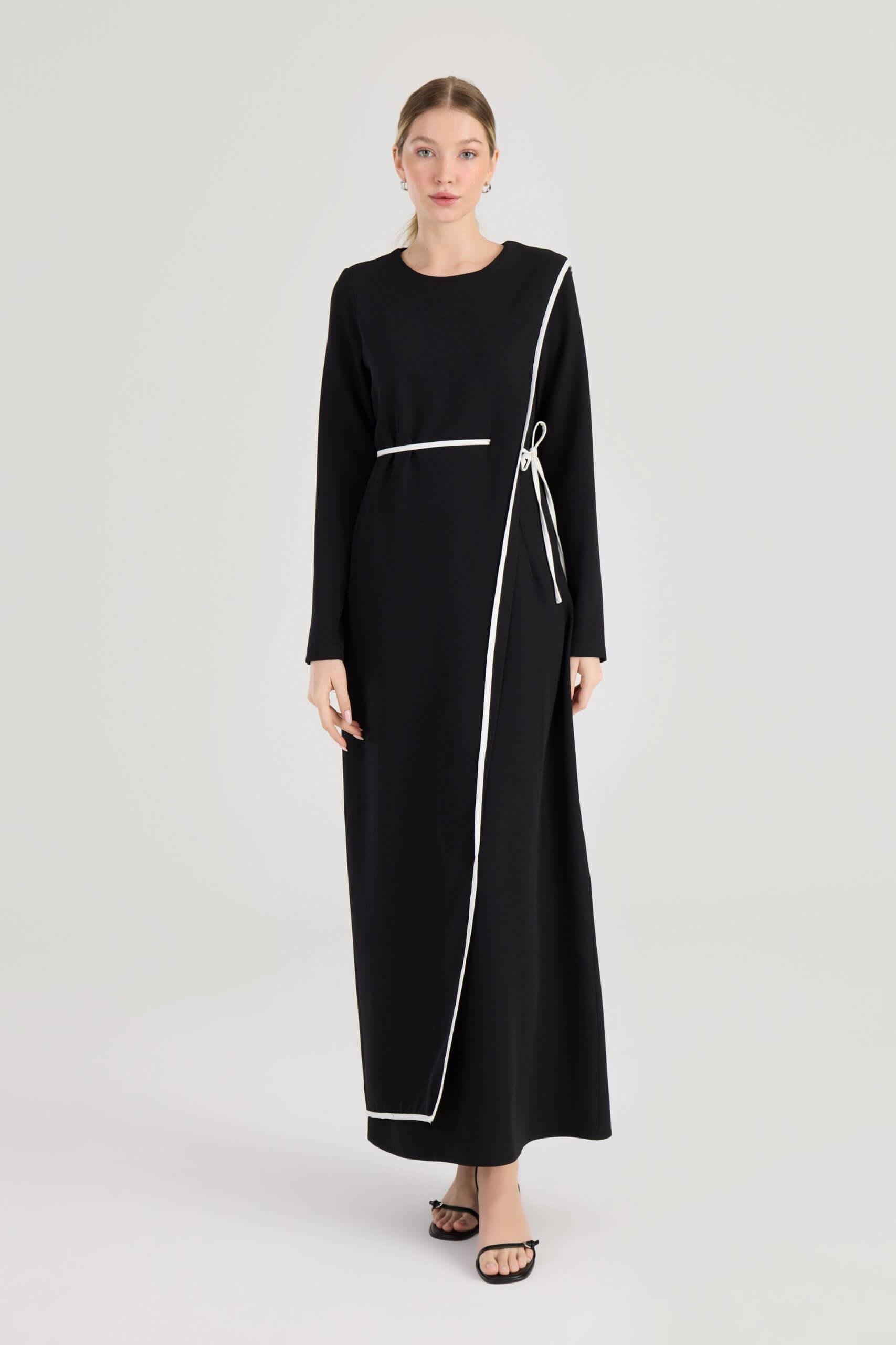 Yandan ayarlanabilir kuşak detayı, ürün boyu 140cm, arkadan fermuarlı, biye detayı mevcuttur. Kuru temizleme önerilmektedir.