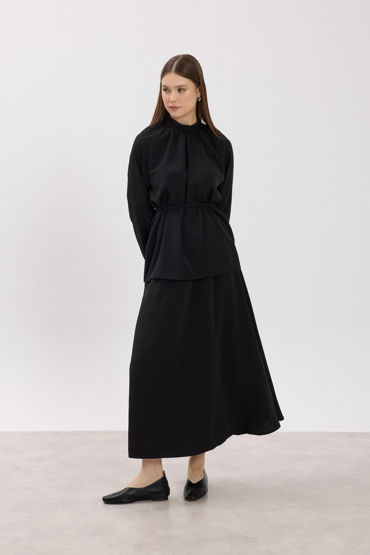 Siyah Büzgü Yaka Detaylı Bluz