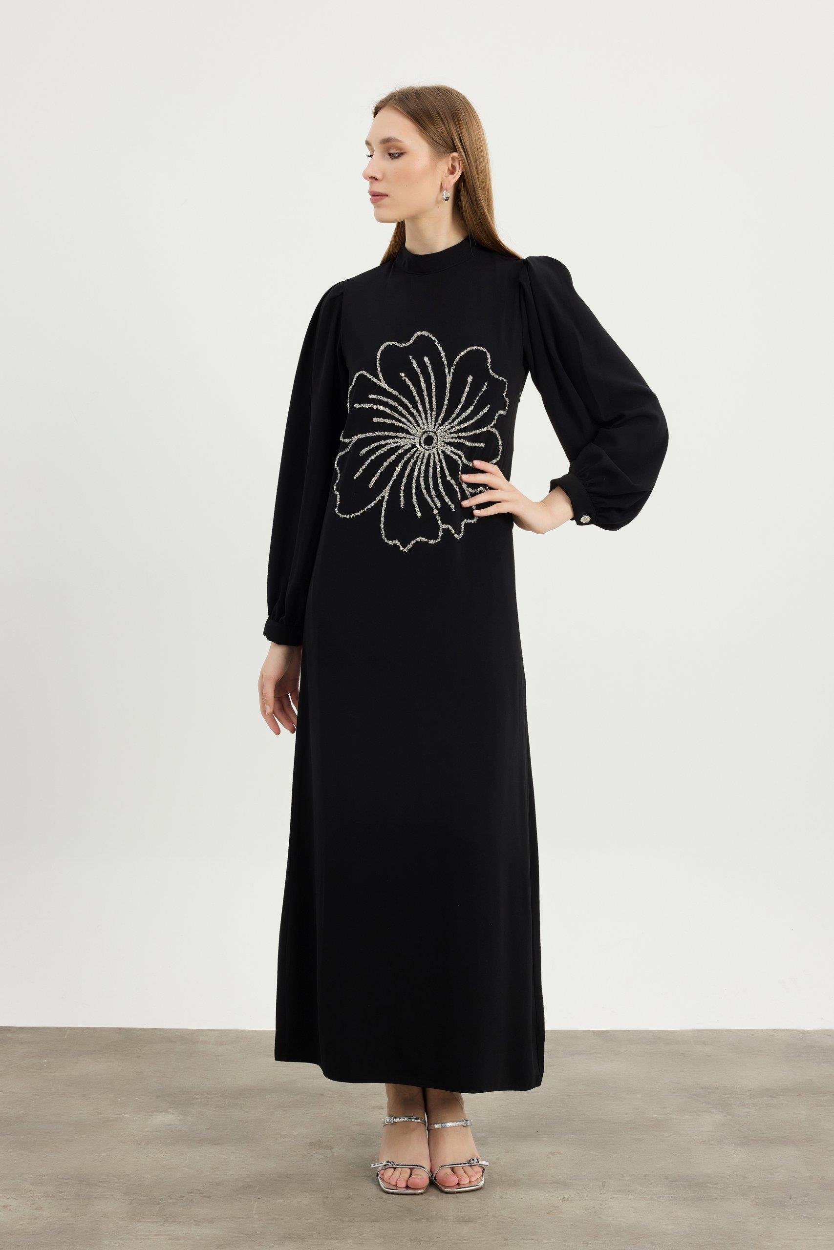 Siyah Flora Elbise