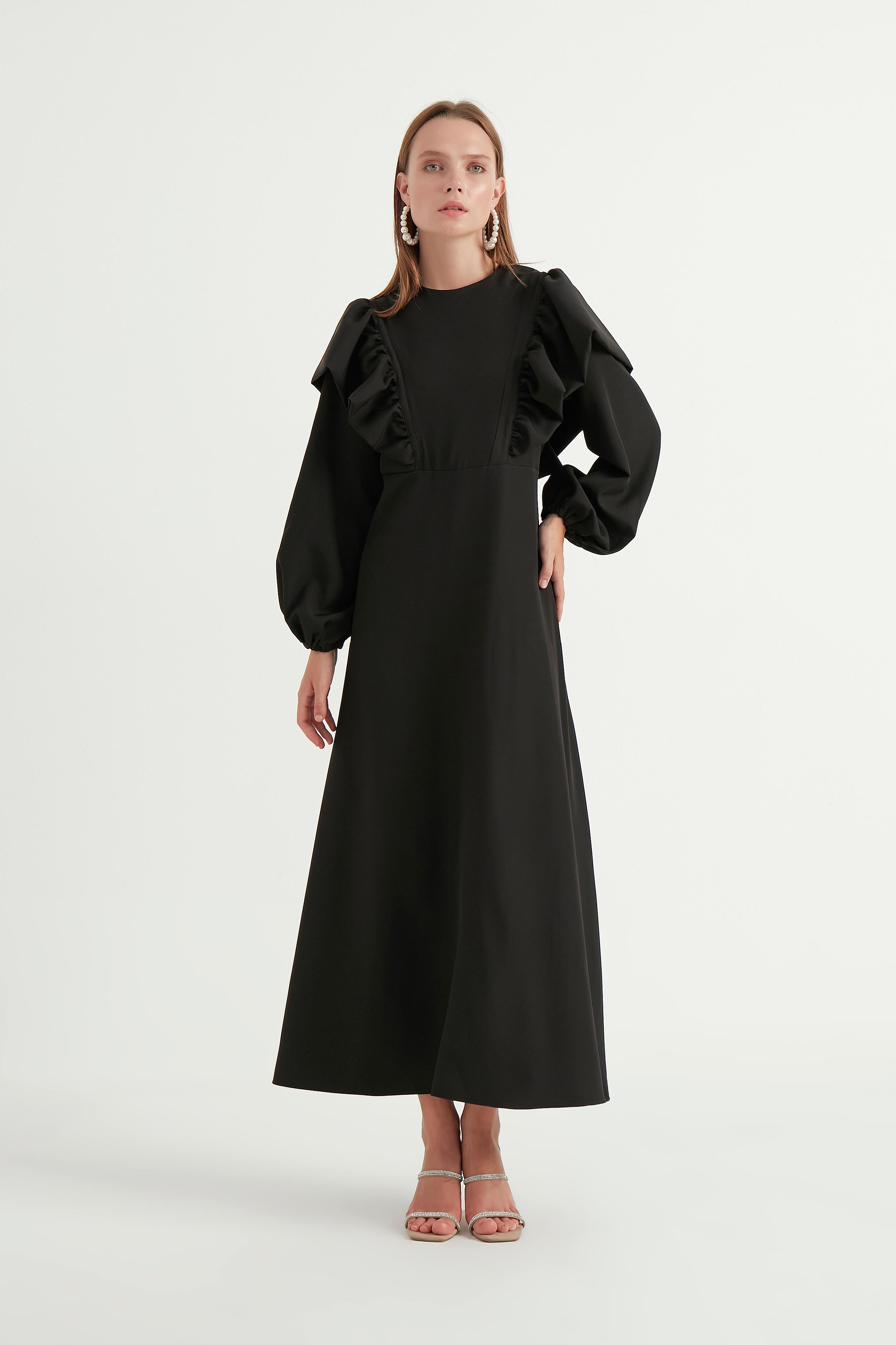 Yuvarlak Yaka, Balon Kol, Lastikli Kol Detayı Double Krep Kumaş, Tam Kalıp, Arkadan fermuarlı, Seyyar Kuşak Detaylı. *Kısa programda tek başına yıkama yapınız. Düşük ısıda ütüleyiniz.