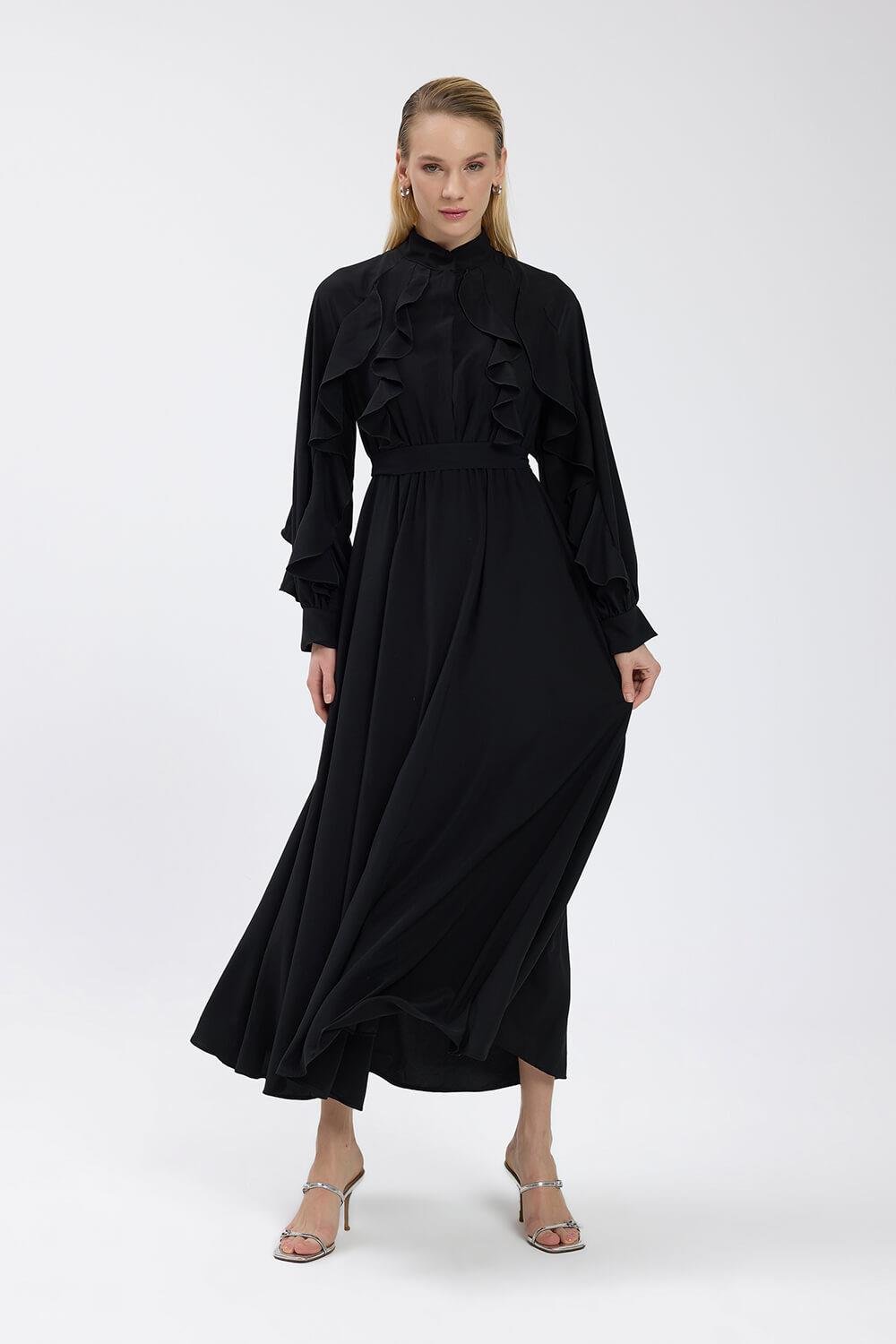 Siyah Volanlı Royal Elbise