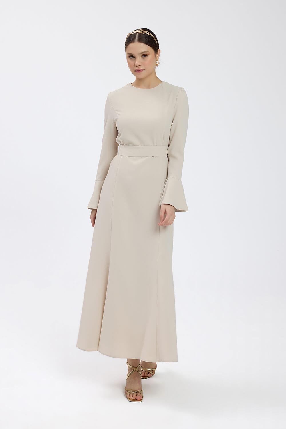Vizon Kuşaklı Krep Elbise